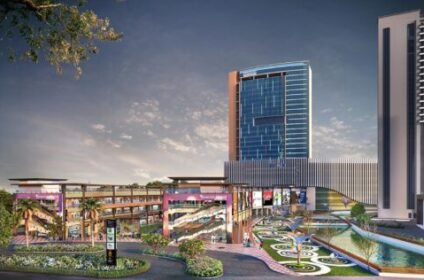 Modern commercial destination featuring office spaces, retail zones, dining hubs & business suites